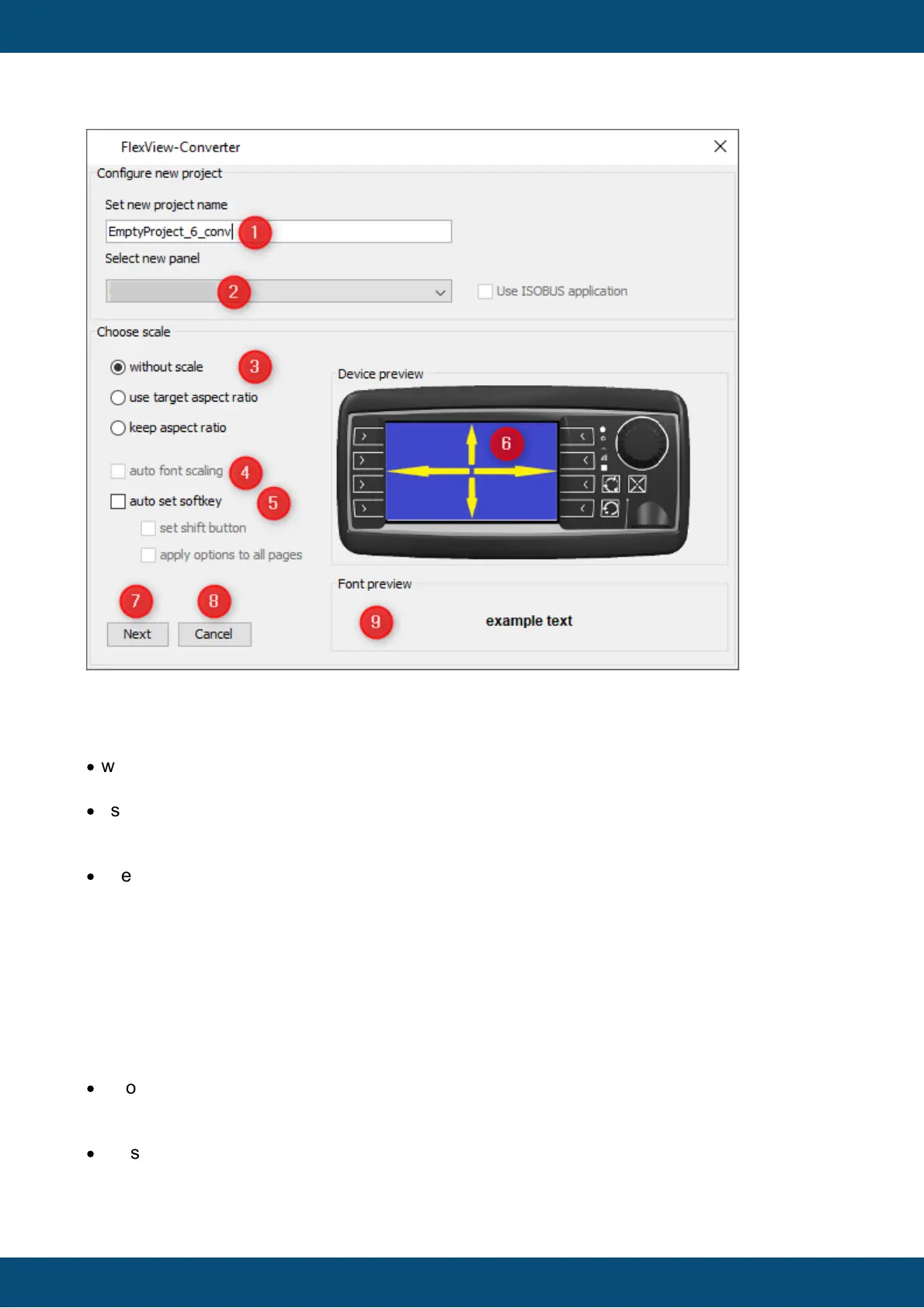 been selected above. A preview of how test will be scaled can be seen in the lower right (9).