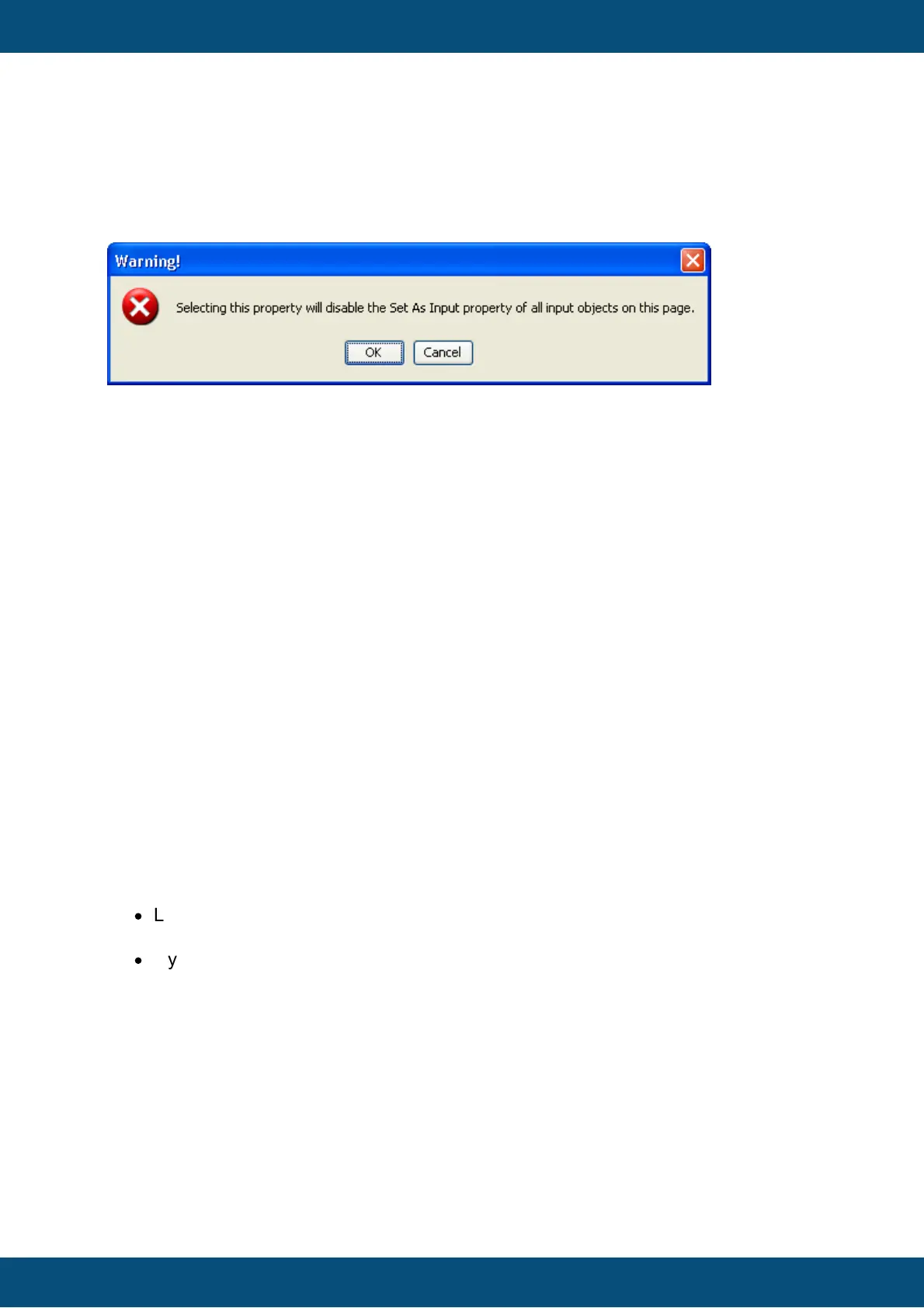 When clicking OK, the Set As Input property of all other objects on the current page will be