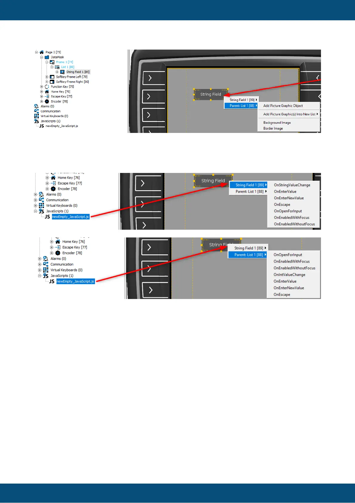 The same goes for JavaScripts. The first level of the context menu shows the object selection