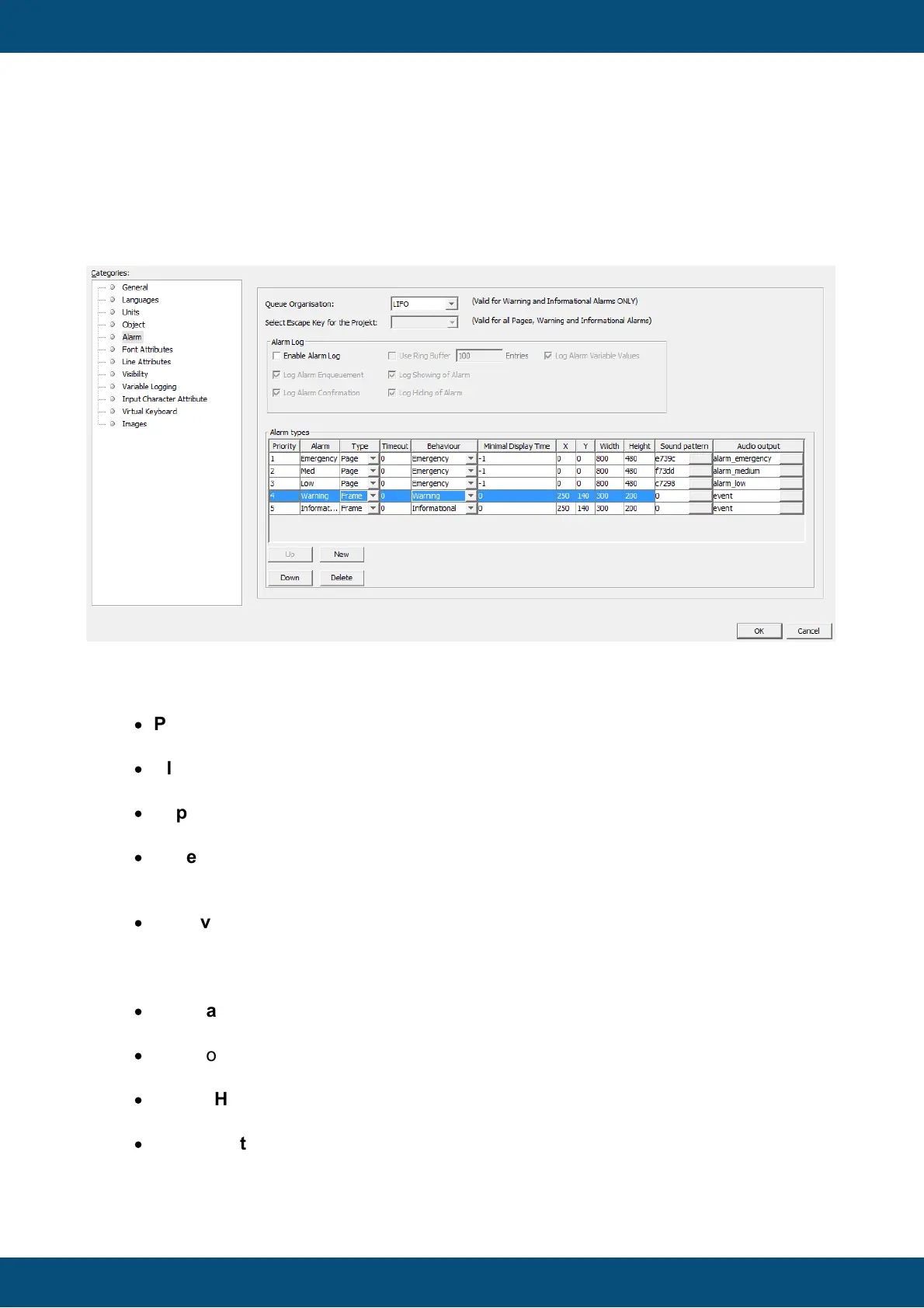 Minimal Display Time: An alarm can only be cleared (by pressing the "Escape" key)