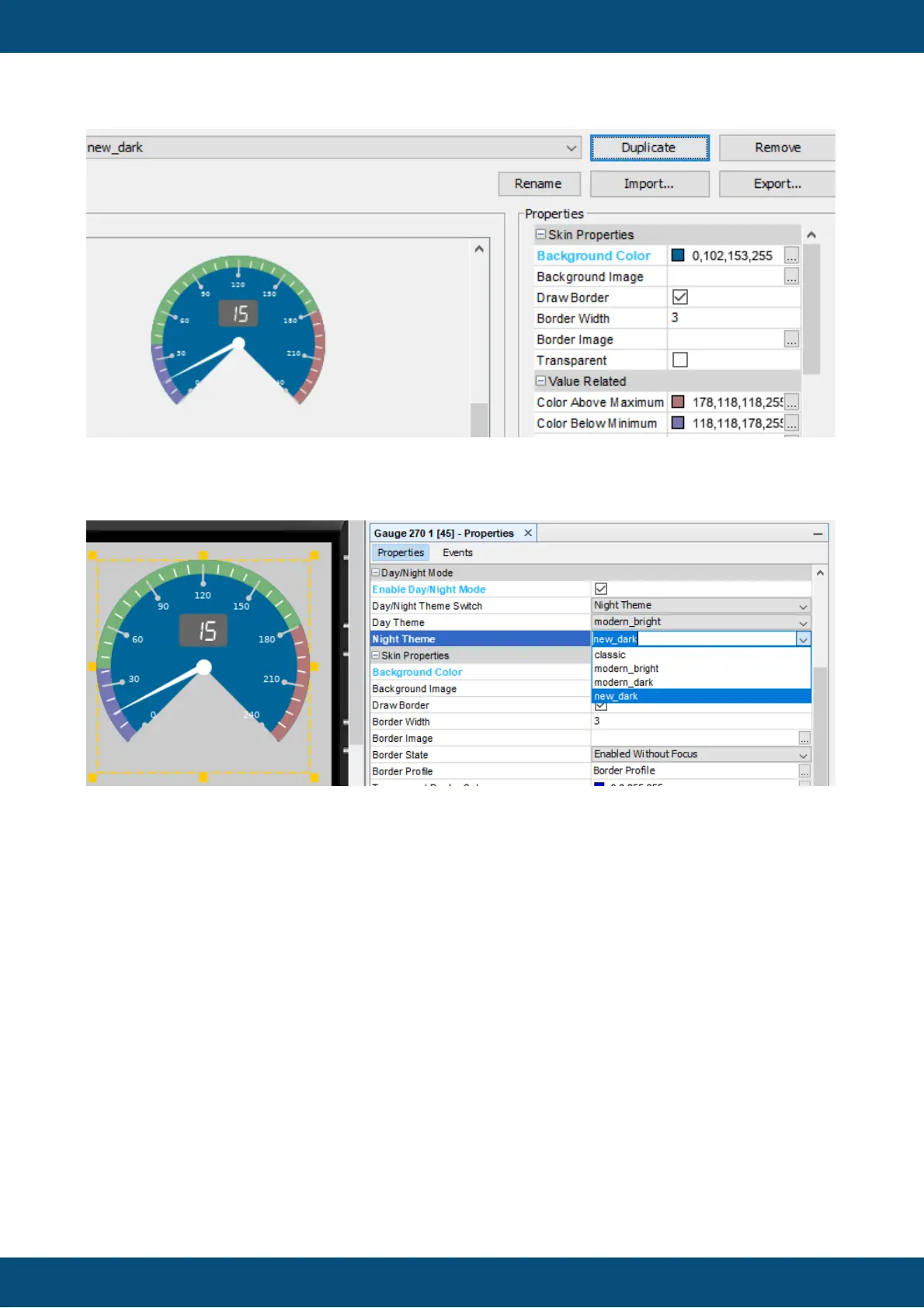 The theme can now be chosen in the object properties for "Day Theme" and/or "Night