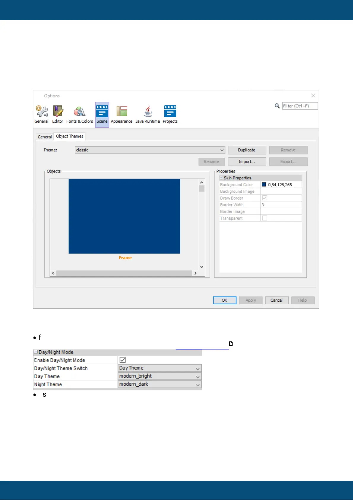for the currently selected object in the scene, by changing the Day or Night Theme property