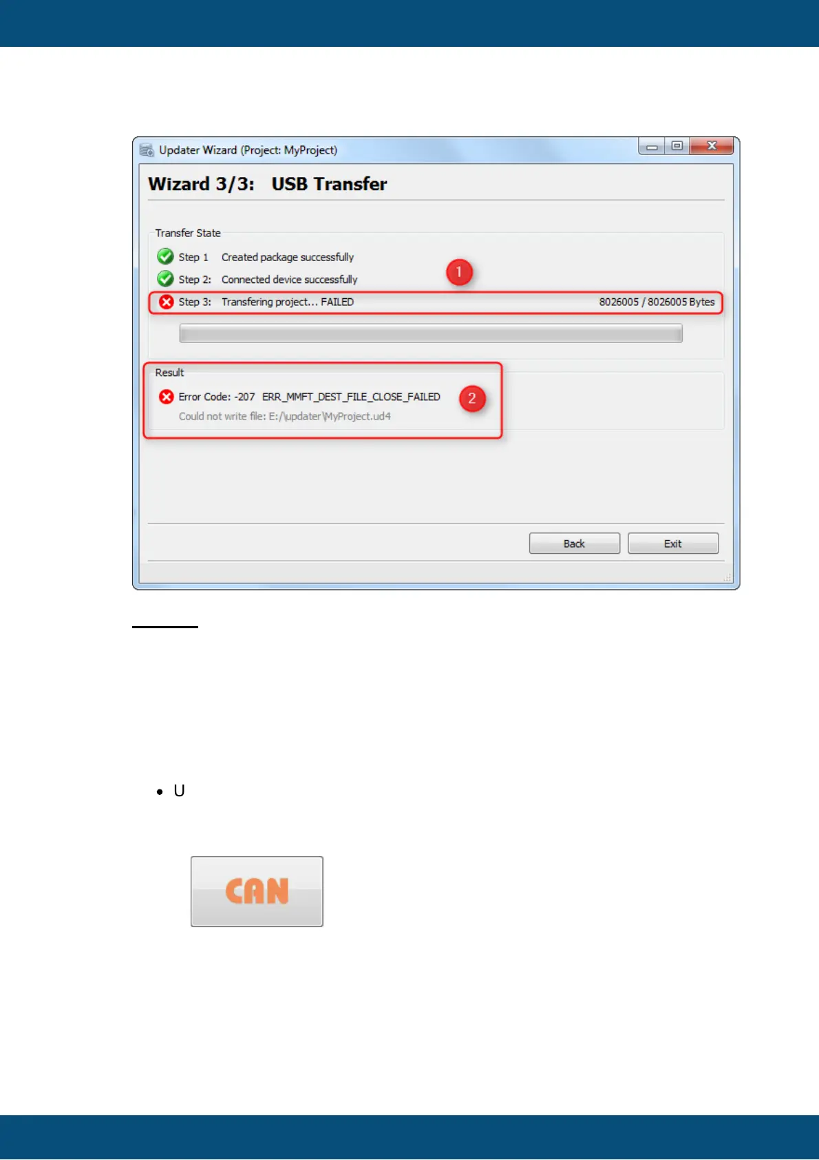 (2) The Error Code (here: -207) is shown under the progress bar. After the code the