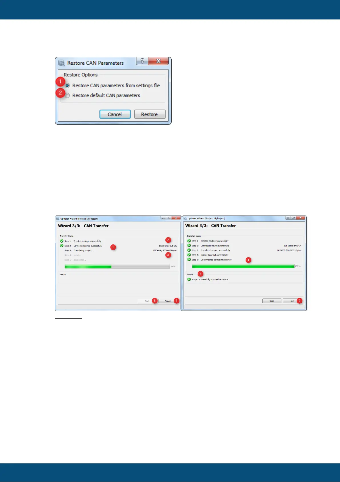 (1) Restore CAN parameters from settings file. This option can be used to restore the