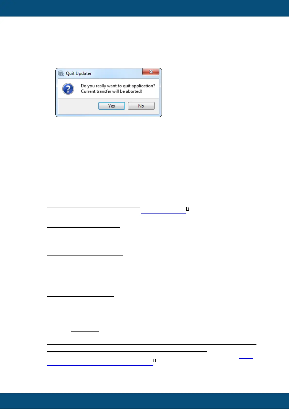 If the application is closed via the "X" button during active transfer, a dialog is