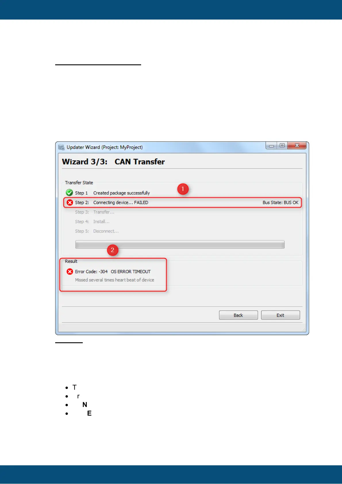 If the CAN Transfer does not work properly, an Error Code with Error Message is