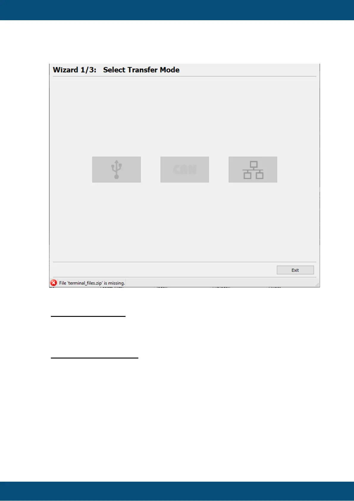 If an error occurs, the Transfer button is disabled.