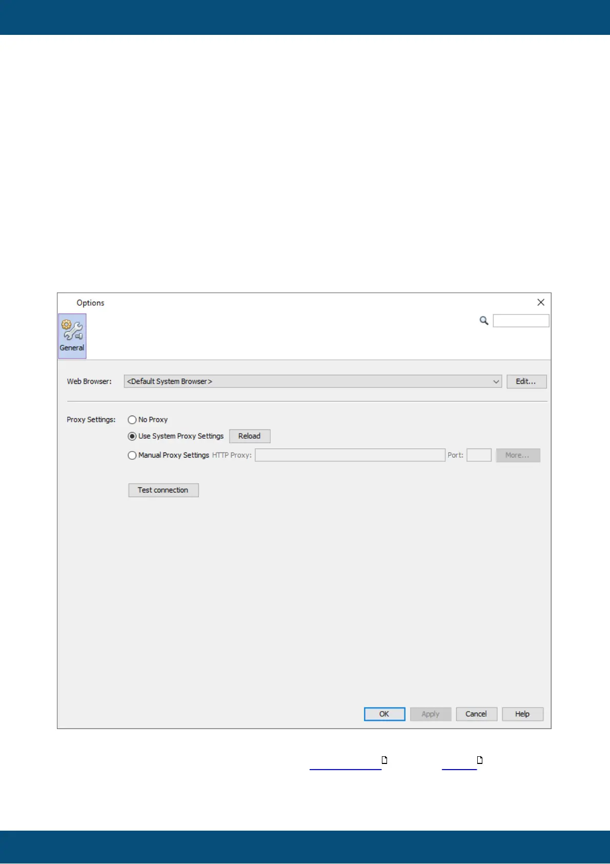 Additionally, proxy settings can be made for the online update and the report