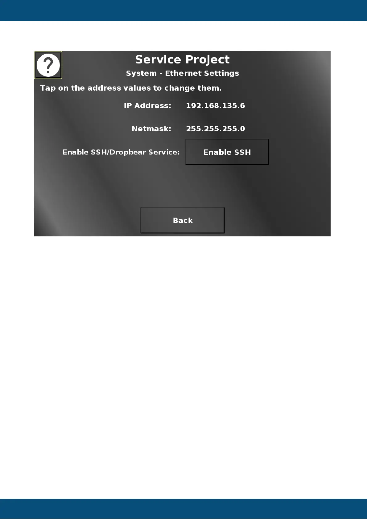 In this screen, the IP address and Netmask can be set, similarly to the updater screen