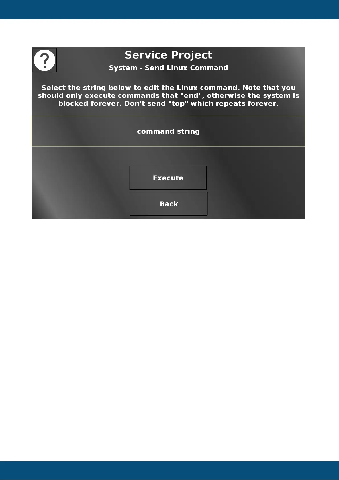 In this screen a Linux command can be executed. Select the field that says "command string"