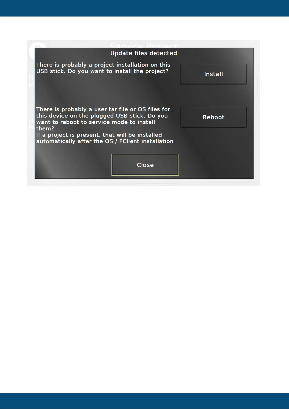 service mode, and if a PClient is installed and a valid project is on the USB stick, that project
