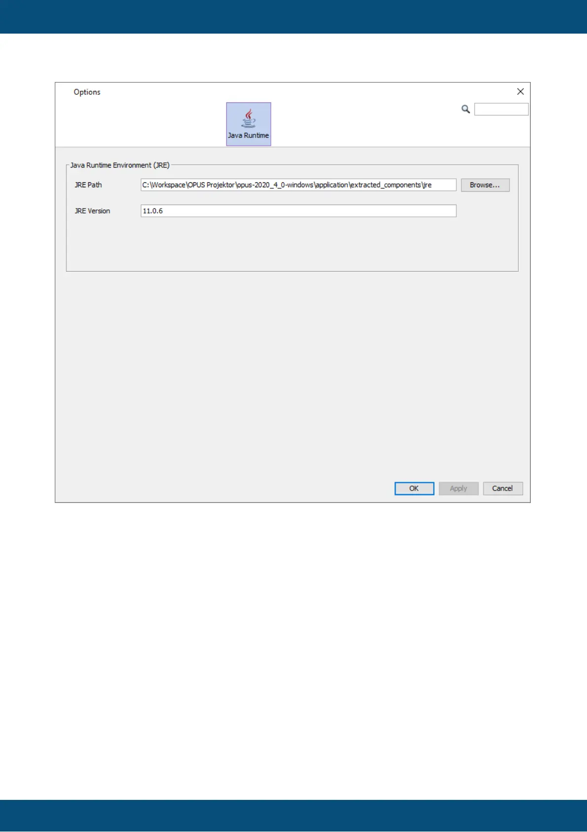 Normally this never has to be changed, as the program comes with its own Java runtime.