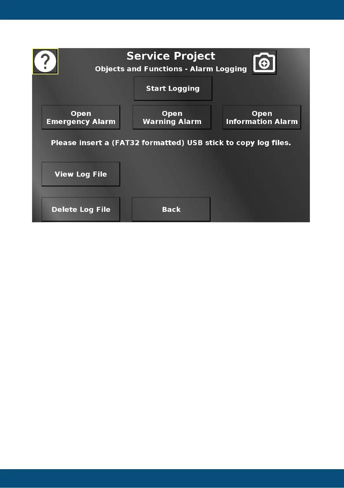 log file. If a USB stick is inserted, the alarm log file can be copied to the USB stick. The USB