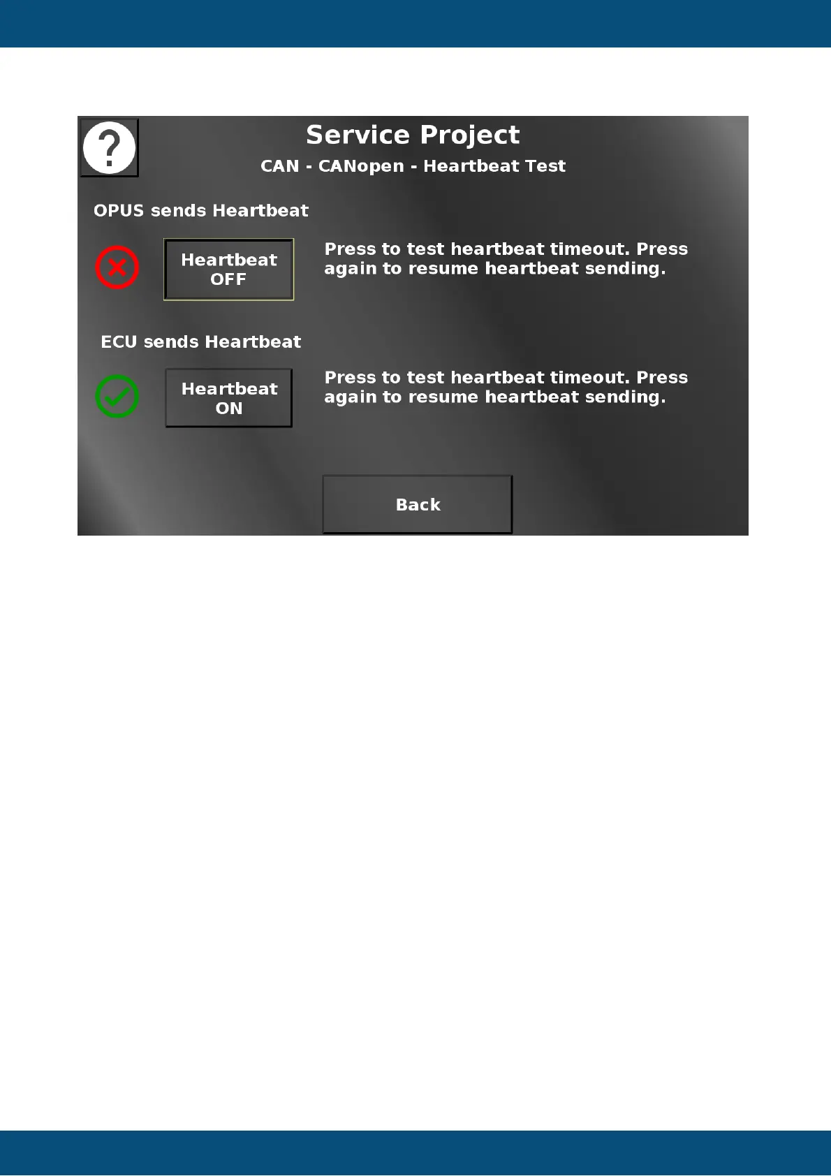 In this screen the CANopen heartbeat functionality can be tested.