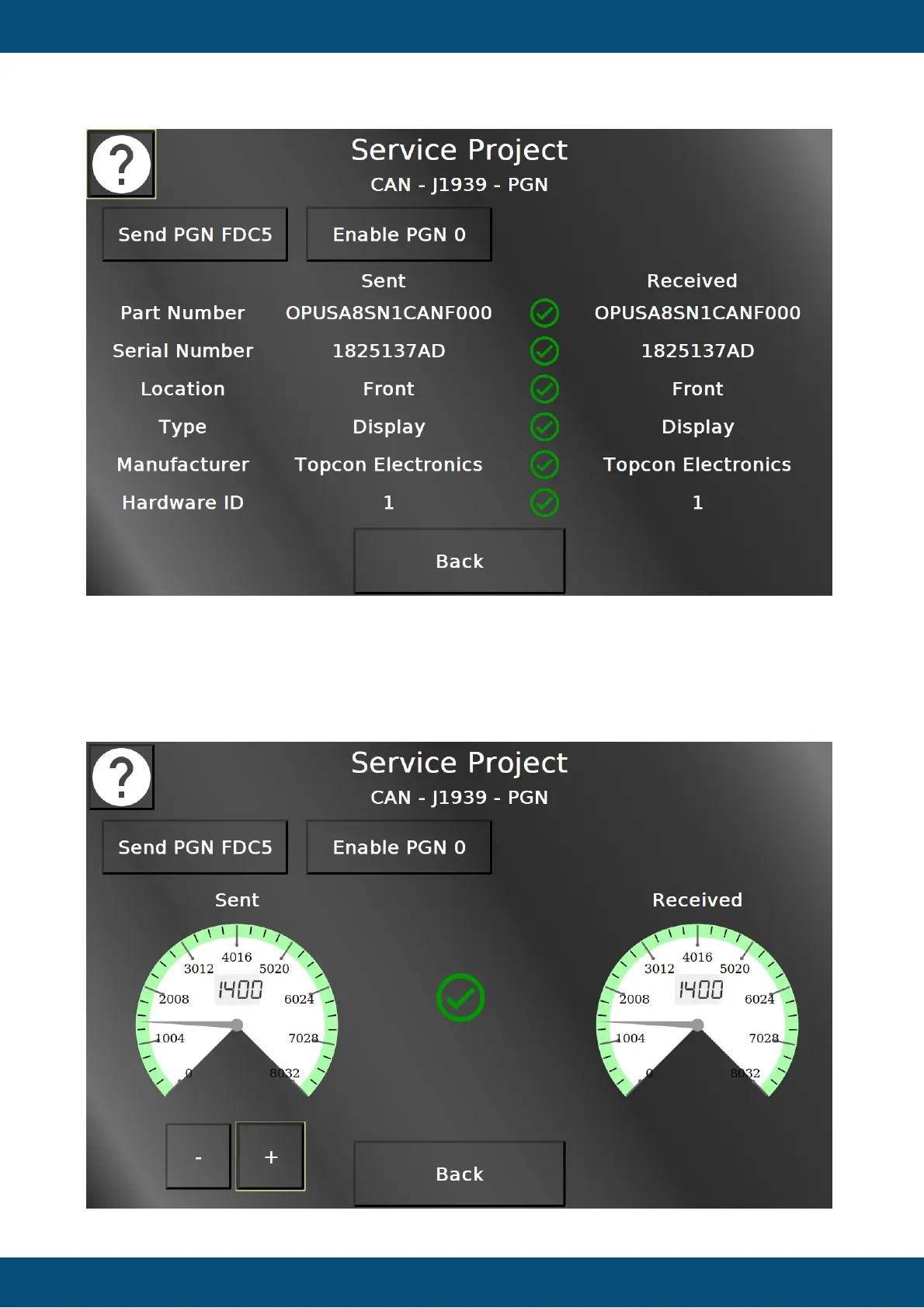 On this screen, two PGNs can be tested. PGN FDC5 contains some device information. With