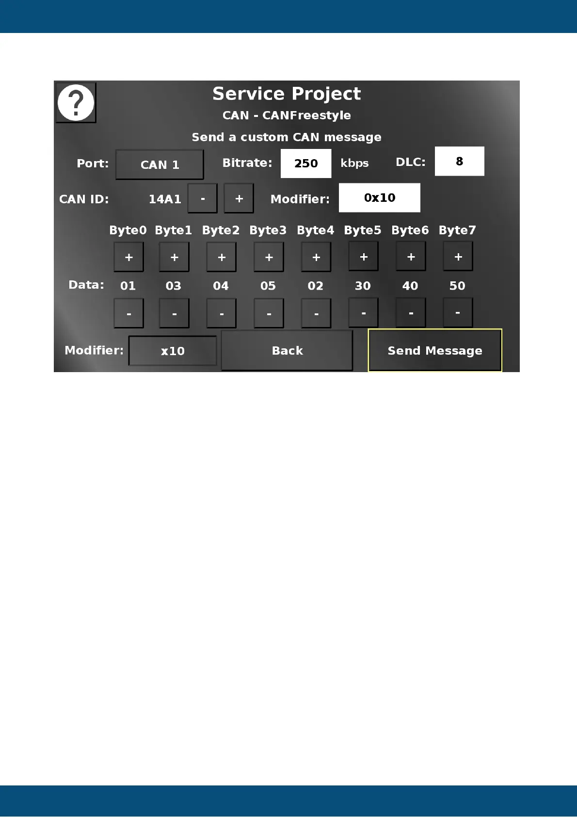 In this screen a custom CAN message can be set up which will be sent to the chosen CAN