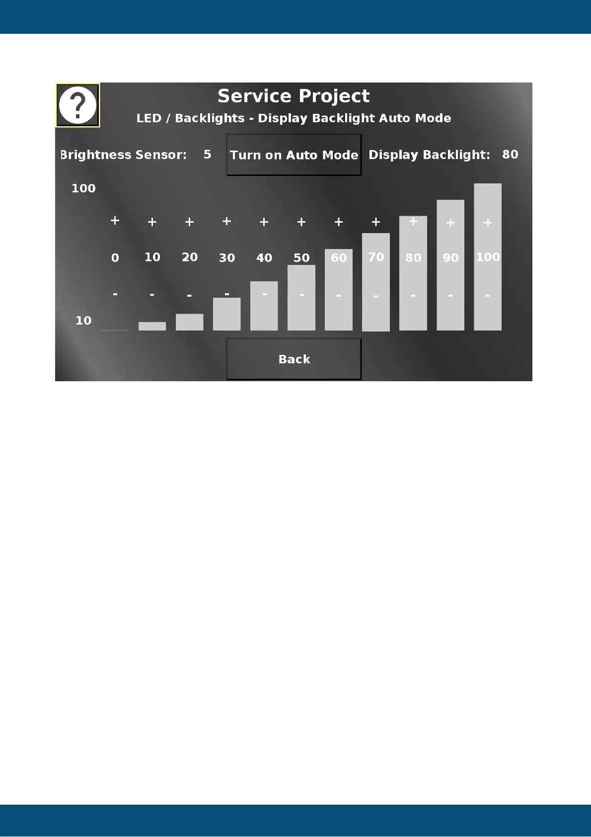 In this screen the automatic backlight control can be activated / deactivated.