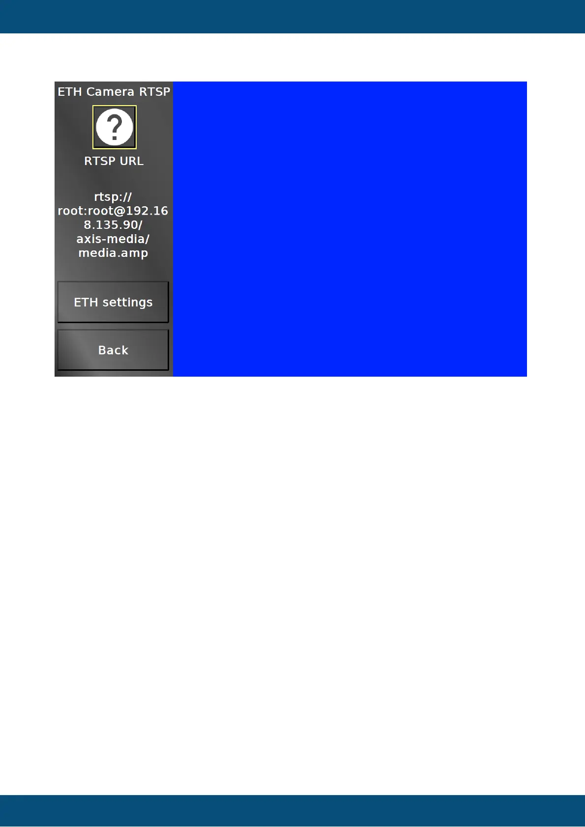 In this screen an Ethernet camera stream can be viewed. Note that only RTSP over UDP is