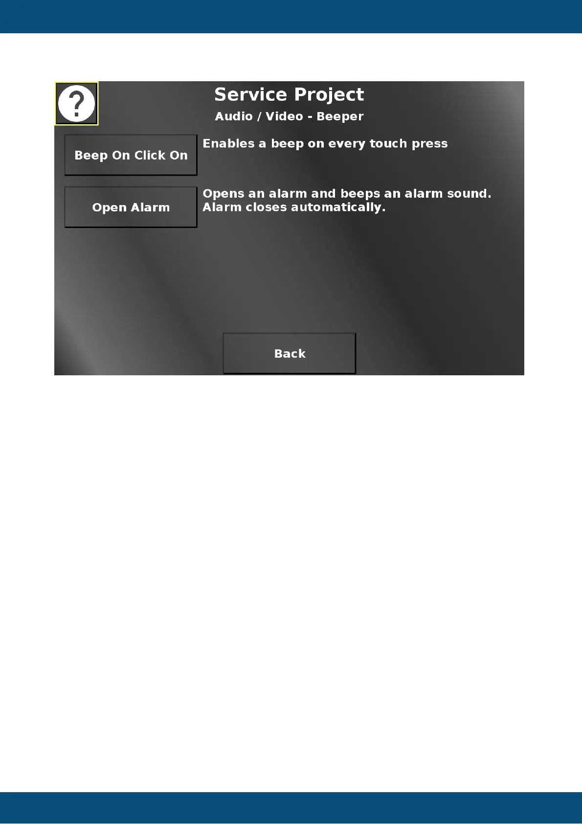 In this screen the beep on click function can be enabled / disabled. With this enabled, the
