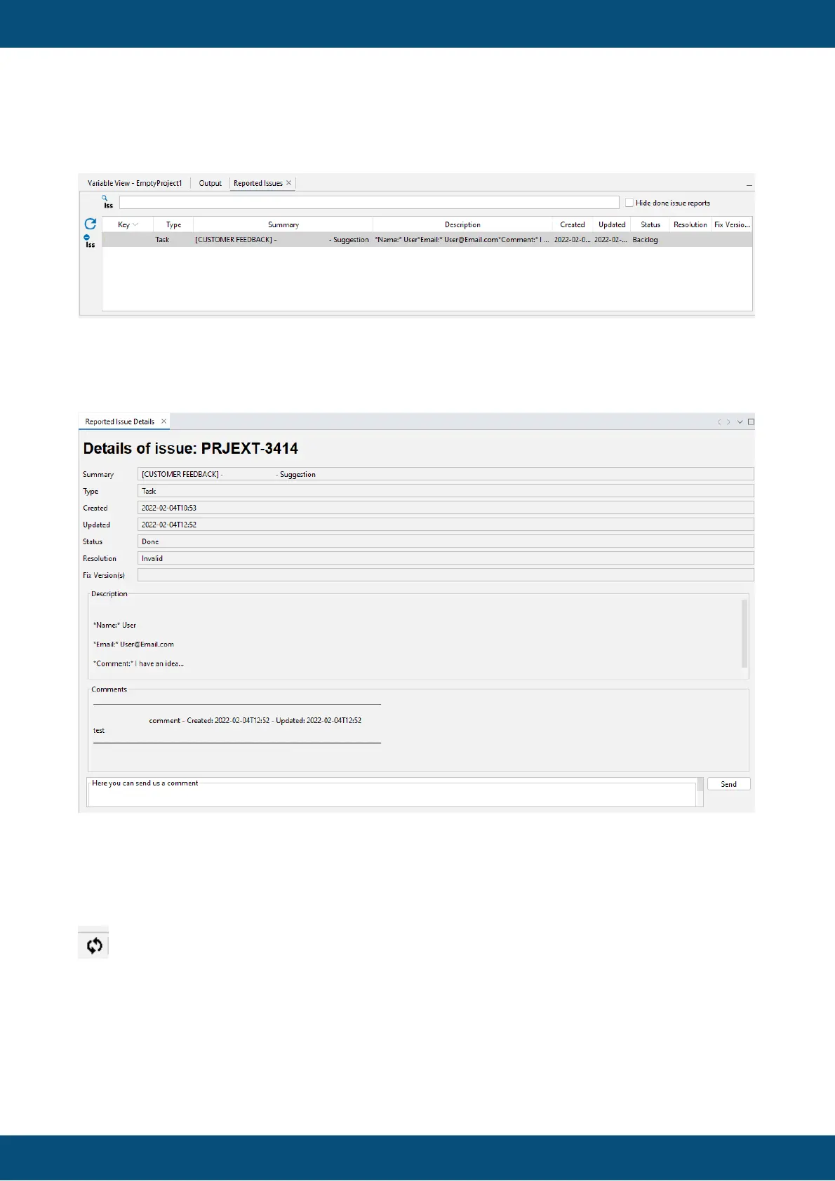 The blue underlined text can be clicked and opens the Reported Issue Detail window with this