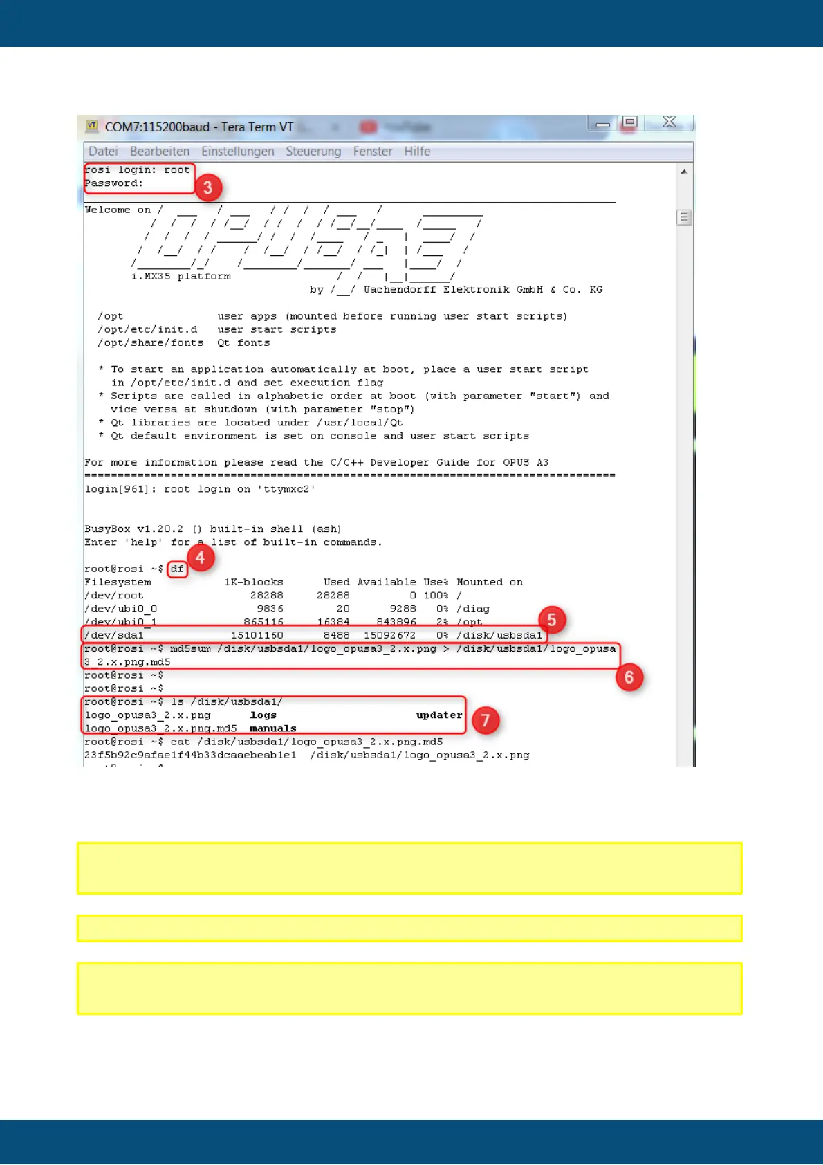 7. Check if the file was created by executing ls /disk/usbsda1 and, optionally,