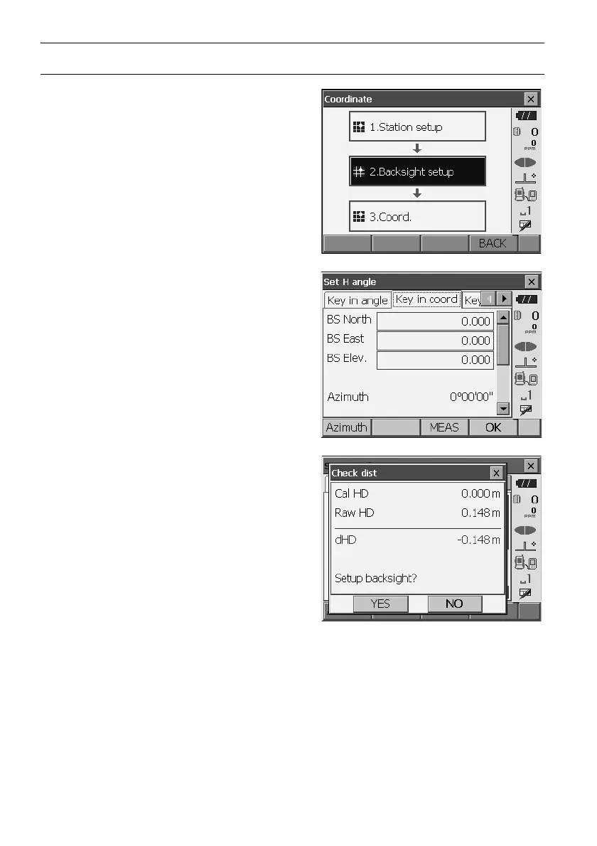 1. Select "Backsight setup" in <Coordinate>. <Set