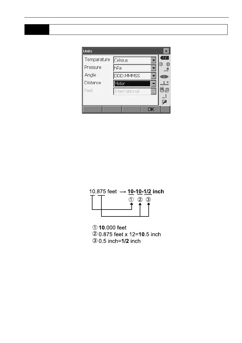 output in “feet” and all the distance values must be input in “feet”. In addition, when the “inch”