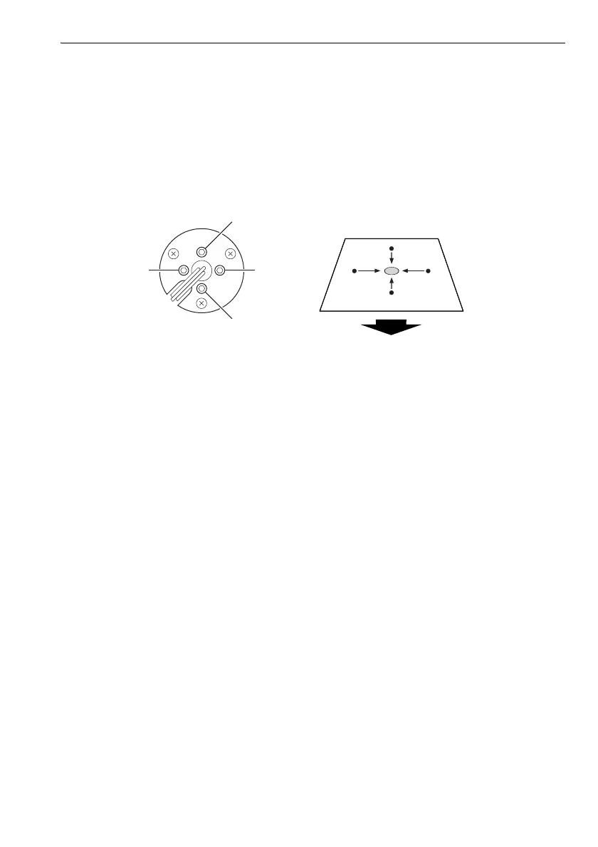 Tightening each of the fine adjustment screws moves the laser plummet beam in the directions