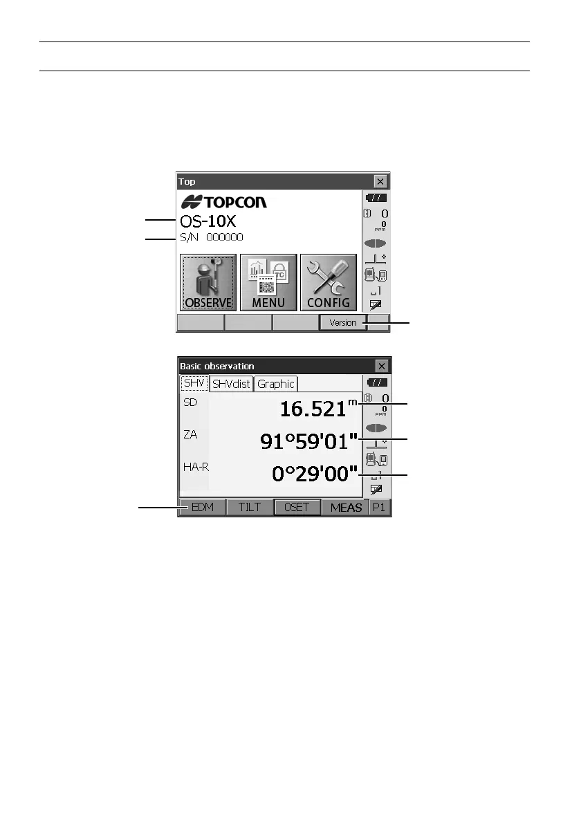 To switch vertical angle/slope in %, press [ZA/%] when allocated to the Observation mode screen.