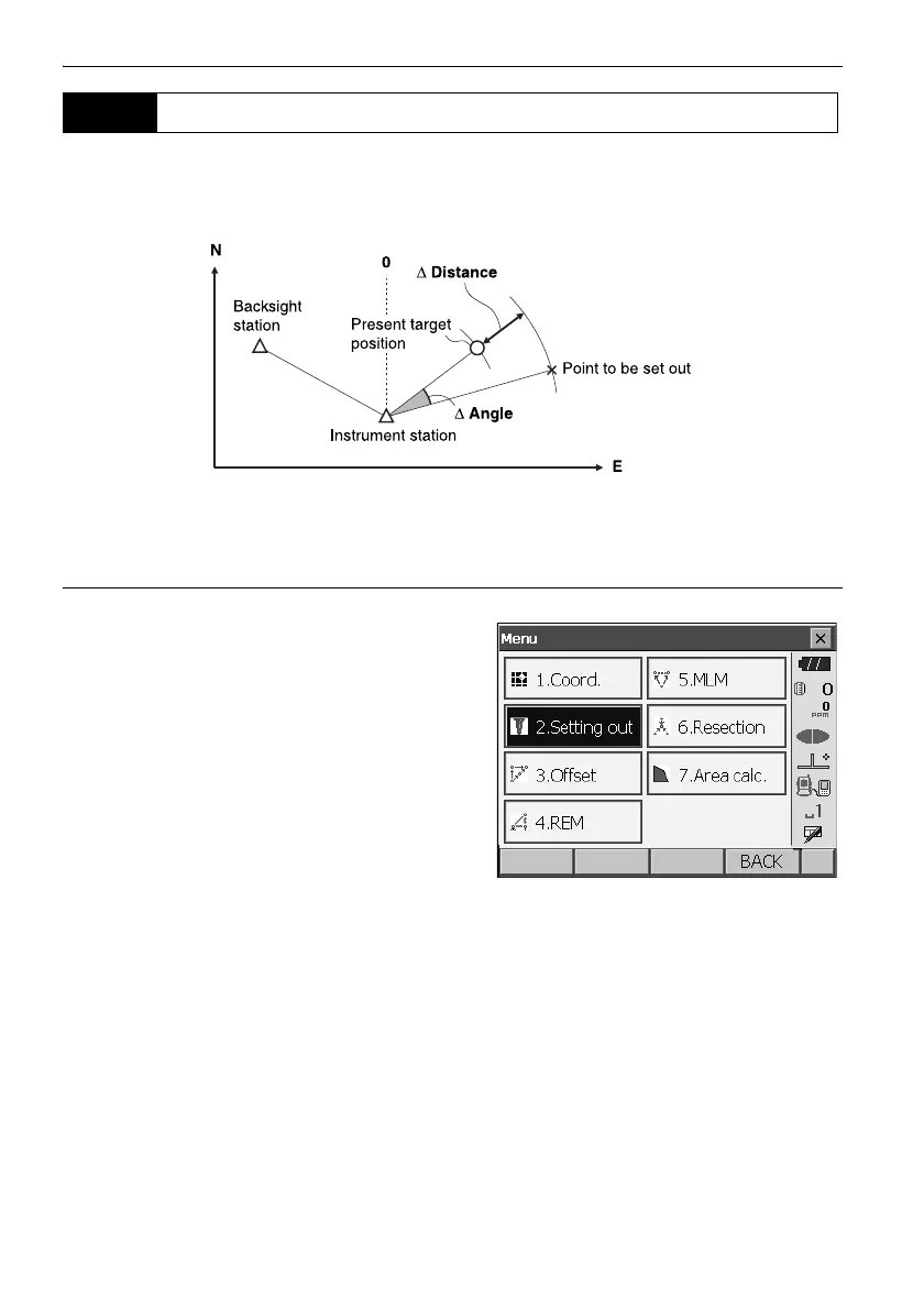 After setting the coordinates for the point to be set out, the OS calculates the setting-out horizontal