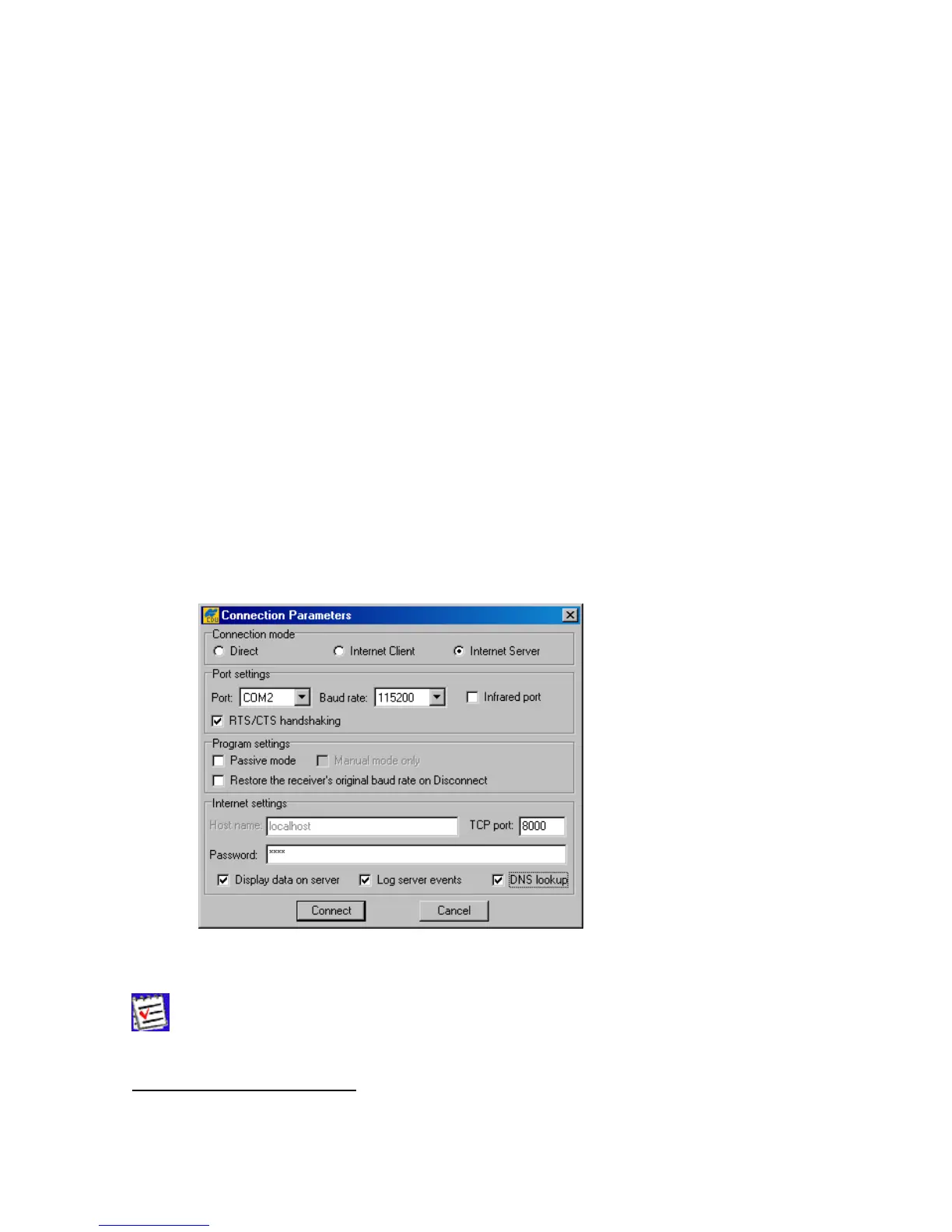 Figure 6. “Connection Parameters” window in Internet Server mode