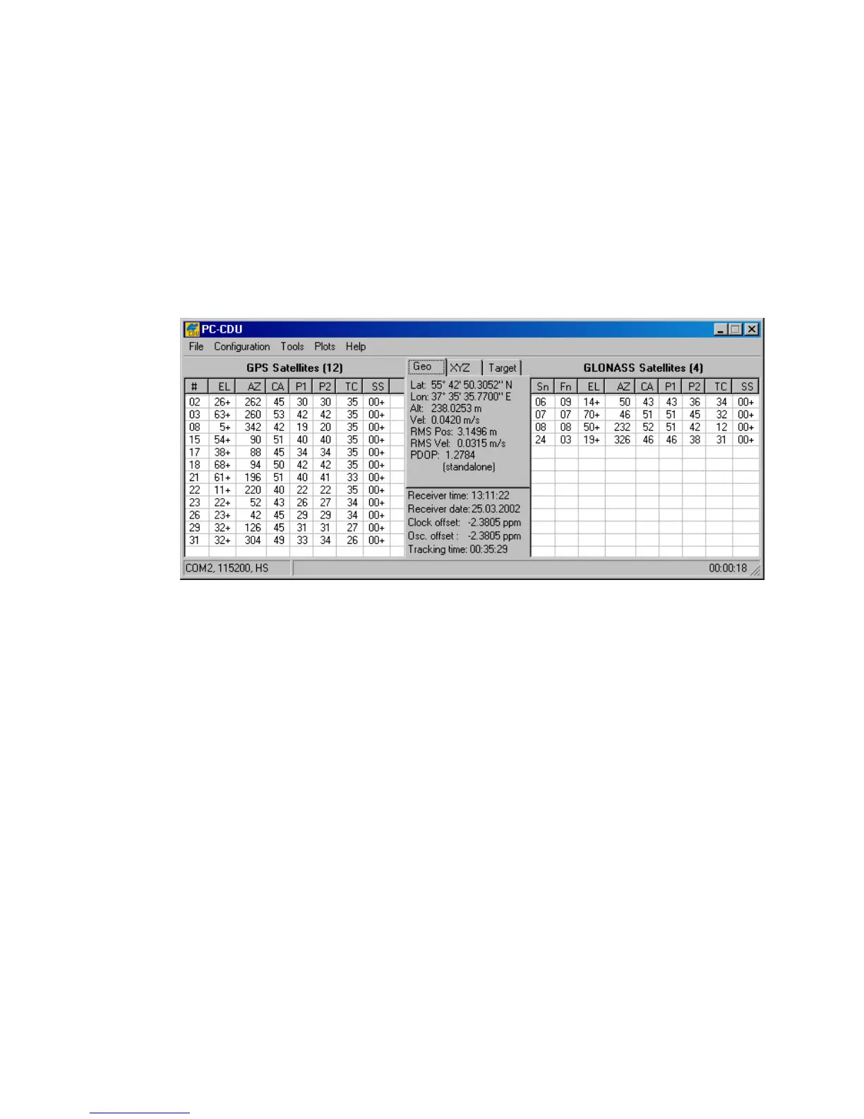 will be opened (see Figure 9). The main window consists of two panels, the GPS Satellites