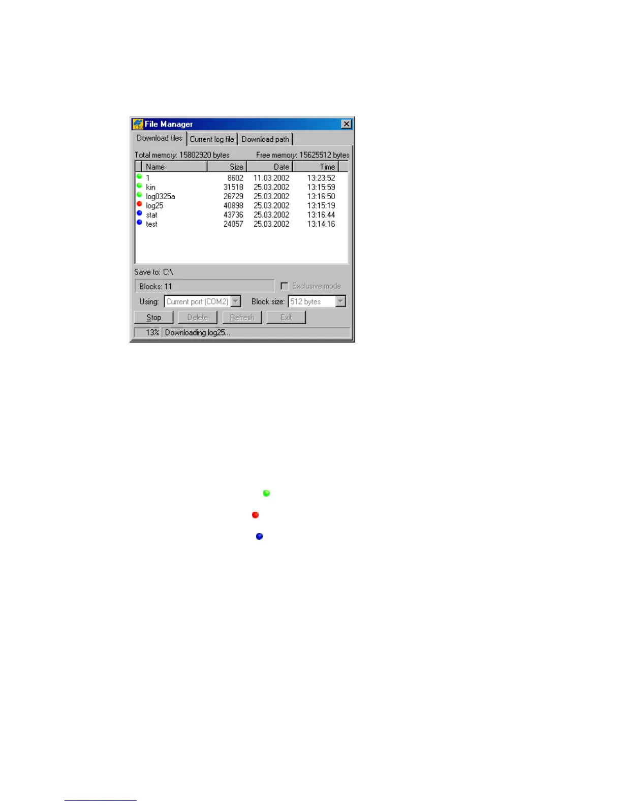 This dialog window (Figure 14) allows one to delete log files from the receiver memory, or down-