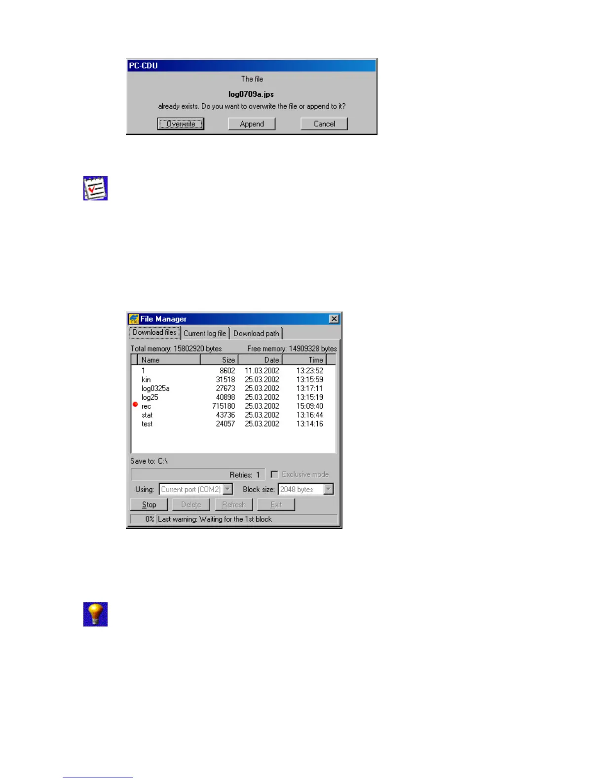 log file (Figure 16) indicates that PC-CDU cannot for some reason retrieve the next block of data