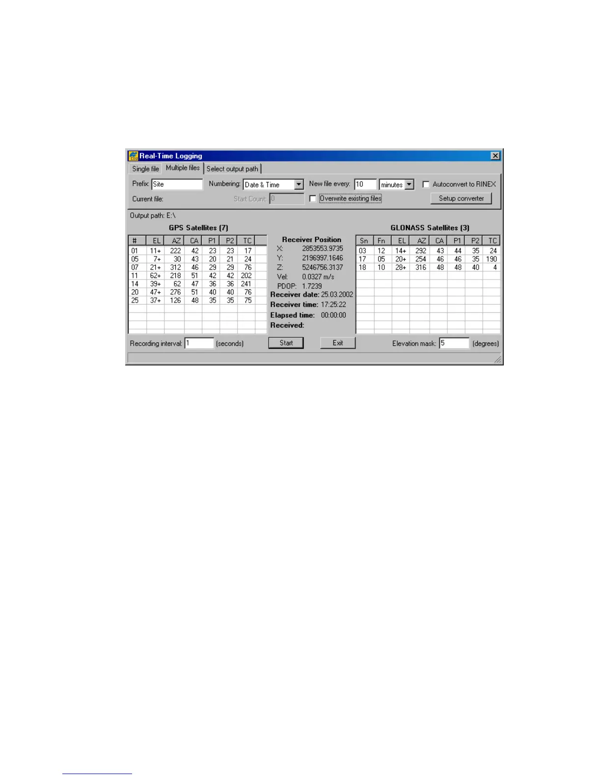 The date and time used for the filename will correspond to the first epoch recorded into the