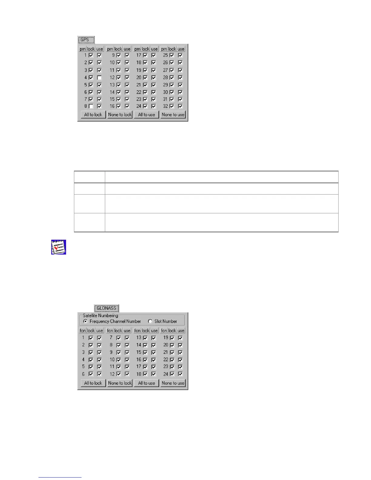 Checkmarks in this column indicate that the corresponding satellites are enabled for position computa-