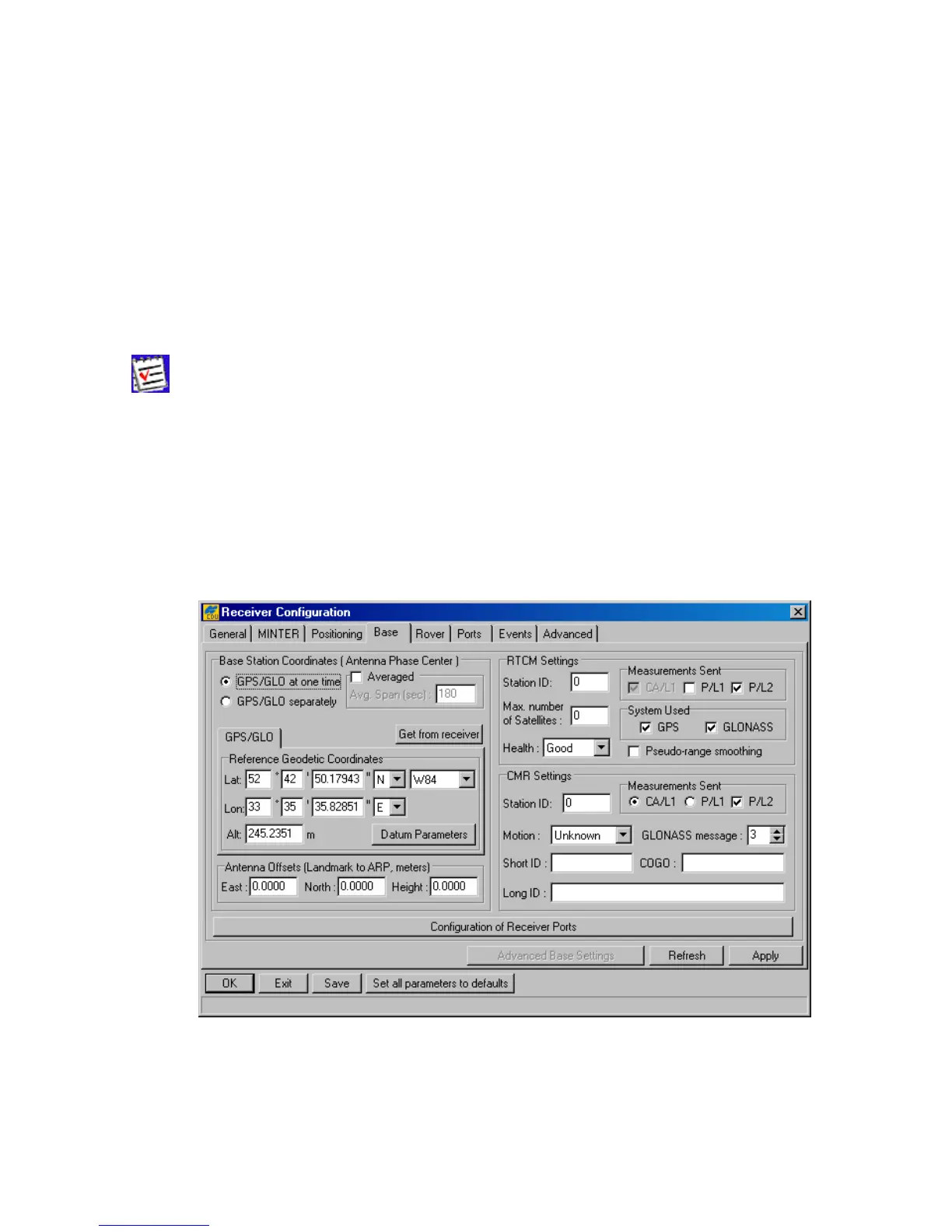 With the Base tab, the user can configure the receiver for use as a reference station (Figure 33).