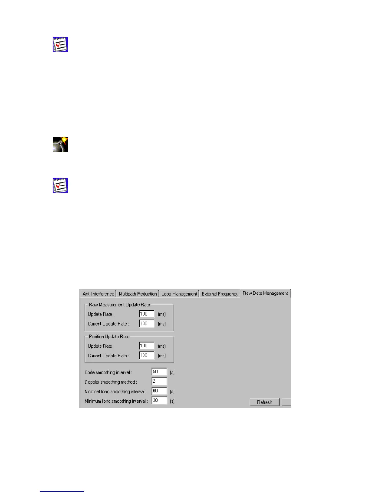 which the receiver will update raw measurement and position. Also, one may set up the controls