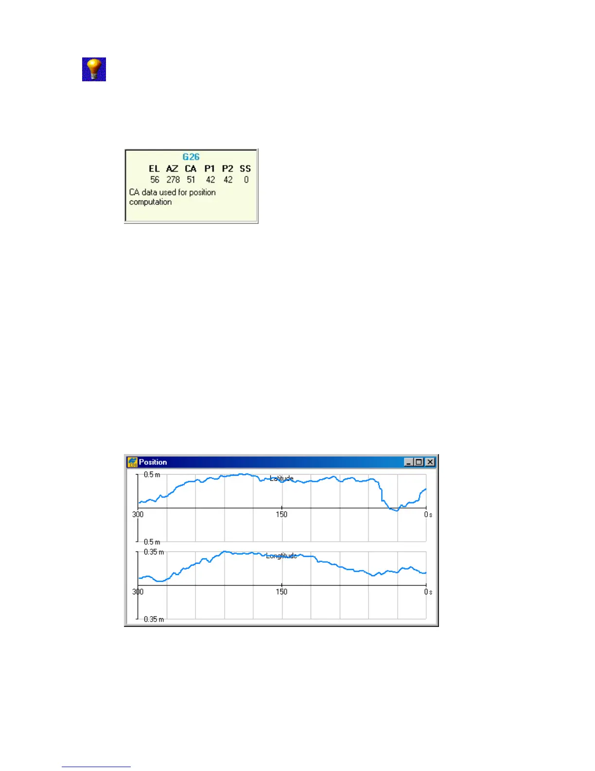 The graphs, in the Position window (see Figure 57), show the difference (in meters) between