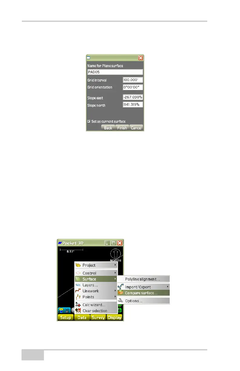 To compare two existing surfaces, tap DataSurfaceCompare