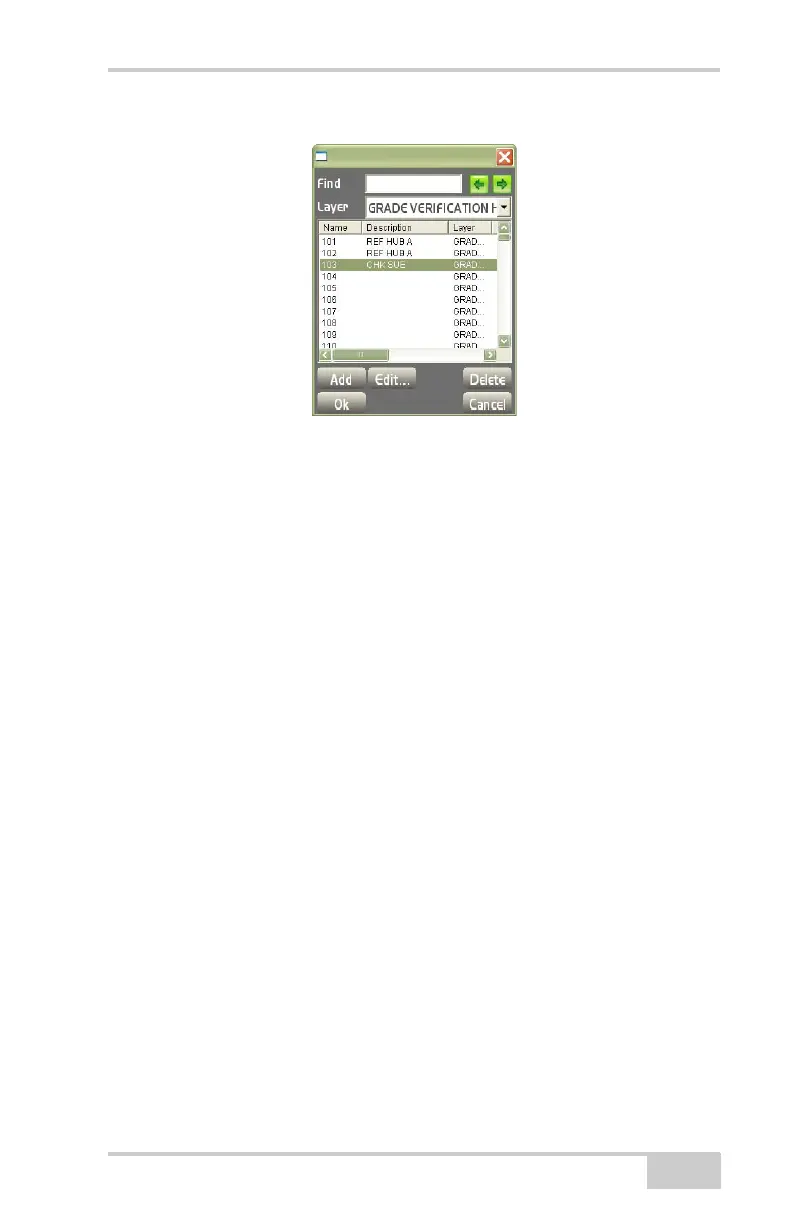 • Edit – on the points listing dialog box (Figure 3-108, press to edit