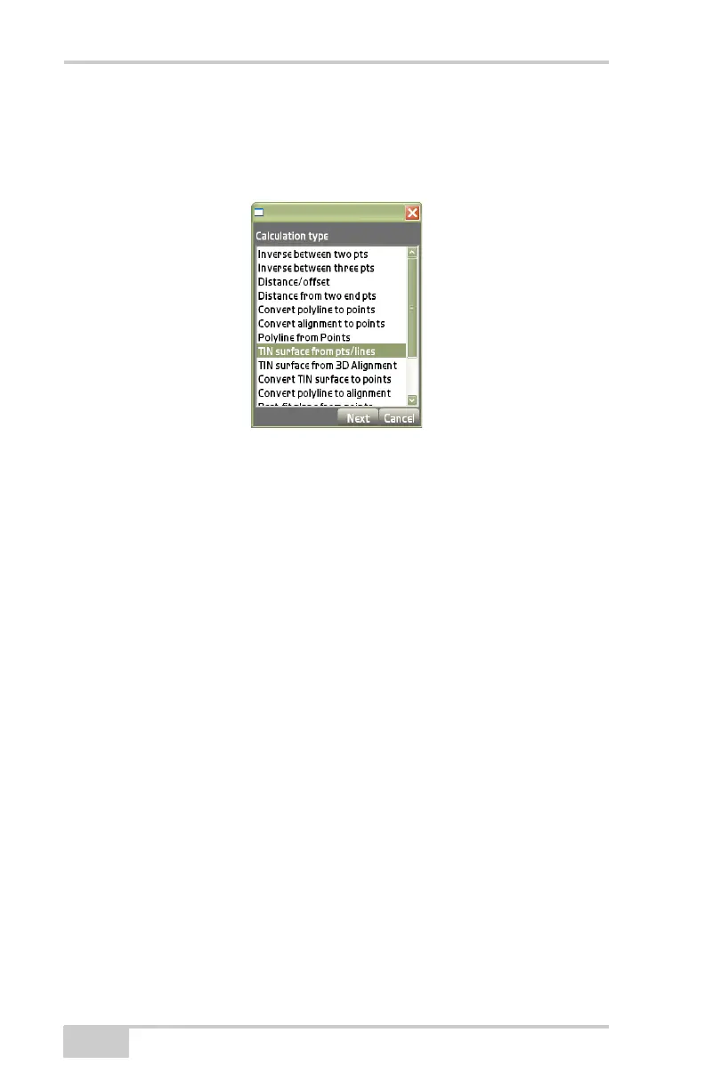 On the Calculation type dialog box, select TIN surface from pts/lines,