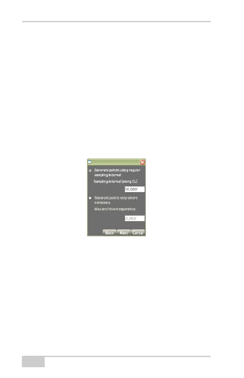 – Sampling interval (along CL): enter a value for the interval at