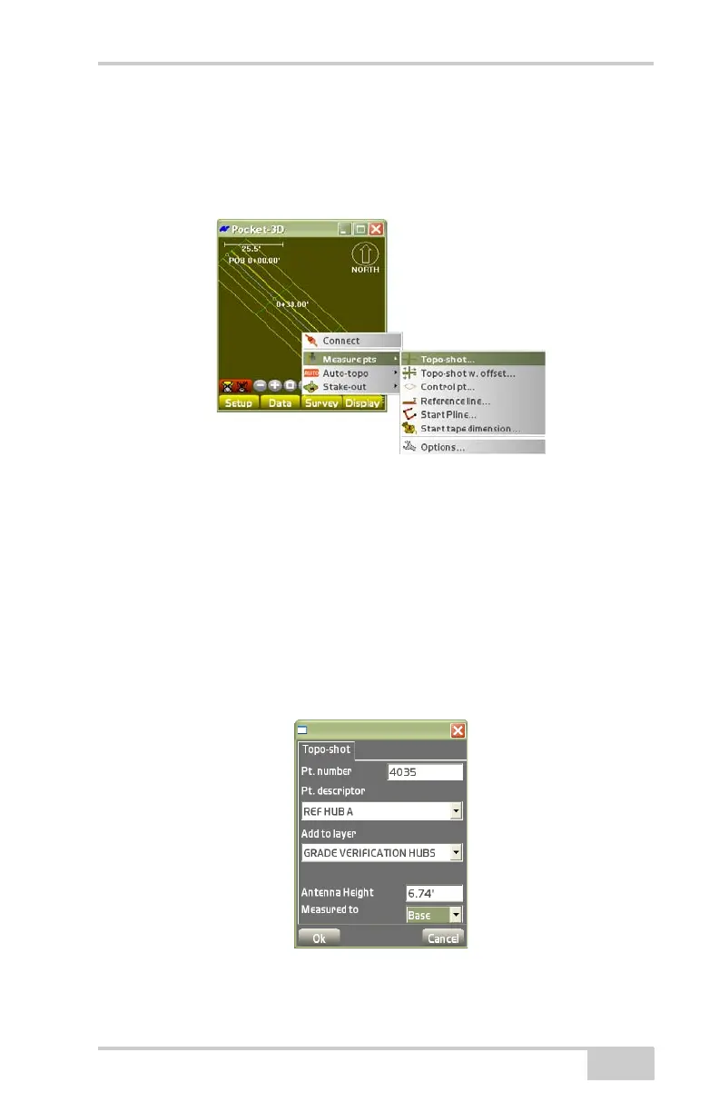 To collect a topo-shot, tap SurveyMeasure ptsTopo-shot