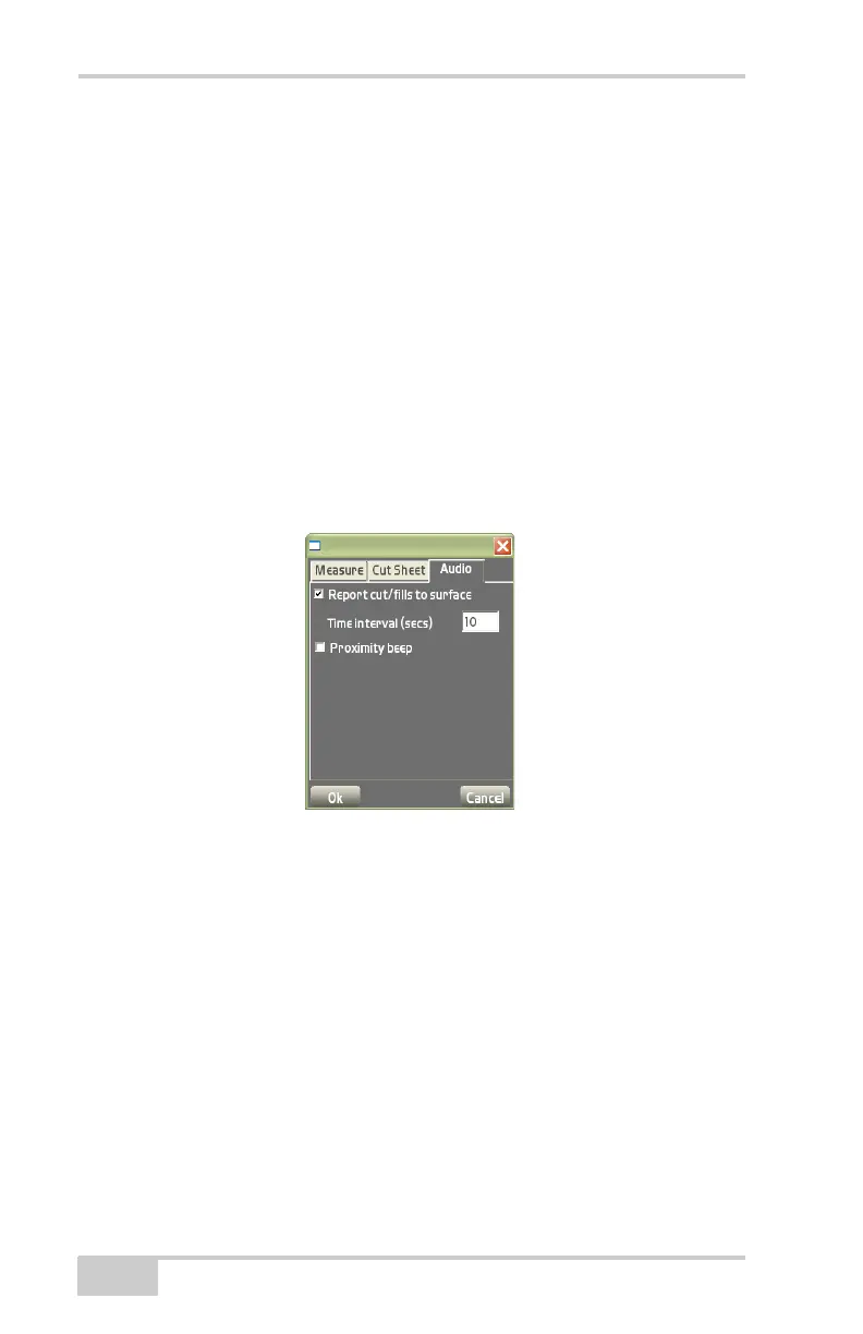 • Report cut/fills to surface – enable to audibly report the cut/fills
