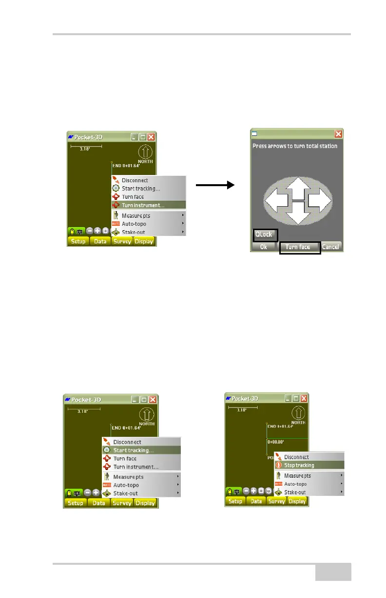 2. Press Turn face to turn the total station (Figure 4-93).