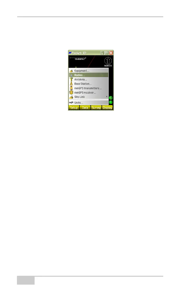 To configure radio settings, tap SetupRadios (Figure 2-8).