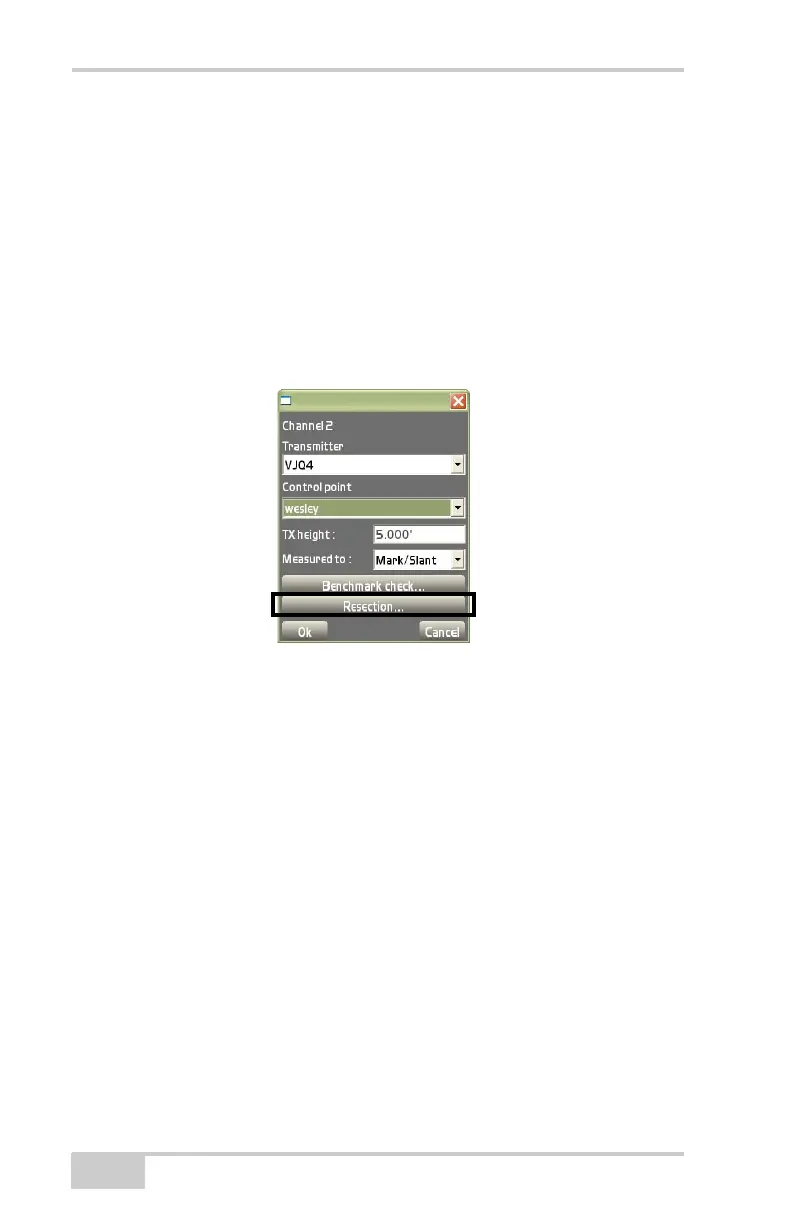 To begin a resection, press the Resection button on the channel setup