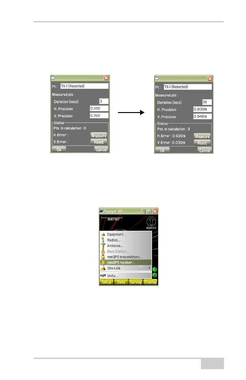 To set mmGPS receiver information, tap SetupmmGPS receiver