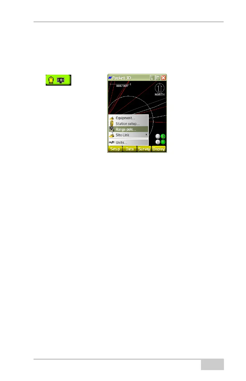 In total station applications, the Setup menu has a Range-pole menu